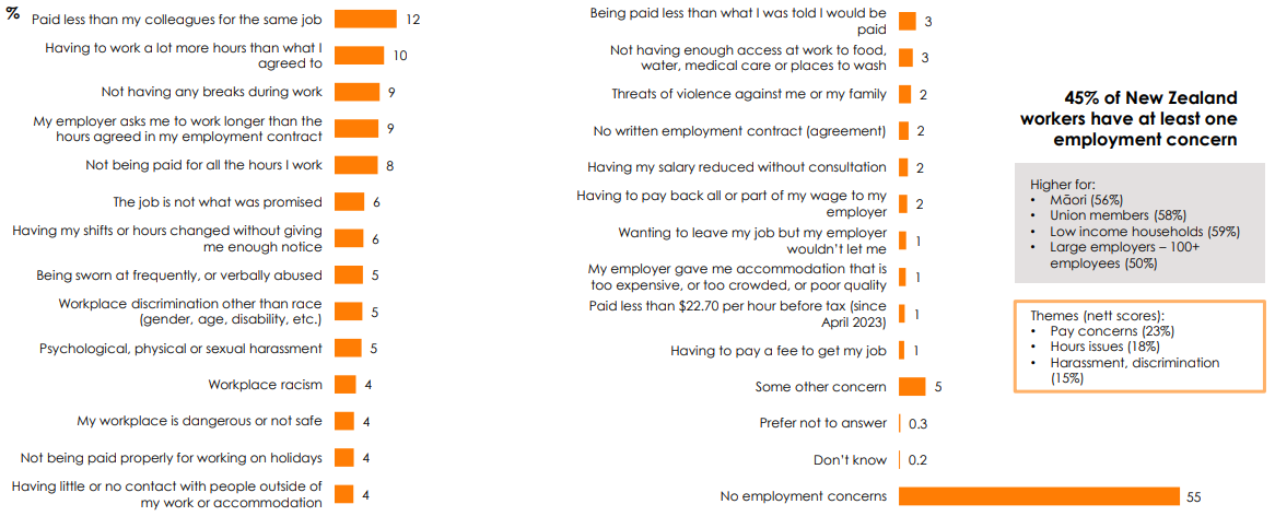 In today’s workplace environment, addressing employee concerns around pay equity, workload balance, and overall well-being is more important than ever. Recent findings show that while many workers in New Zealand rate their employment positively on issues such as safety, respect, and learning opportunities, significant challenges remain, particularly for union members, low-income earners, and workers in industries like retail and transport. These sectors show a higher incidence of employees rating their workplace negatively on key factors such as respect, management support, and flexible working.